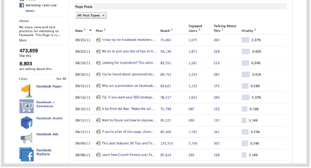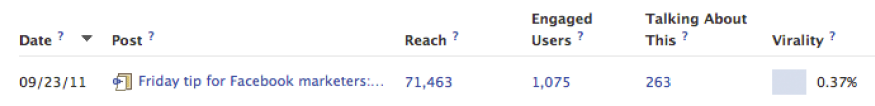 Virality: İçerik ile etkileşime geçen tekil kullanıcıların (Talking About This) bu içeriği gören tekil kullanıcıların (Reach) içindeki yüzdeliği