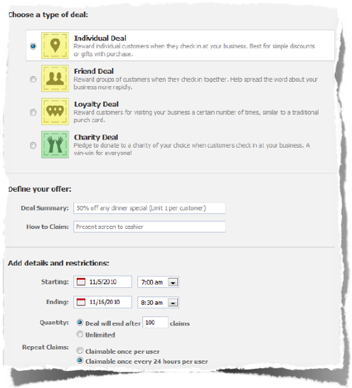 Daha önce tiplerinden, örnek kampanya kurgularından ve sosyal yaşantımızda neleri değiştirebileceğinden bahsettiğimiz Facebook Deals’ın Eylül ayında Türkiye’de kullanıma açılması bekleniyor. İşte bu yazımda, markaların Facebook Deals ile adım adım nasıl kampanya açabileceğine değinmek istiyorum.