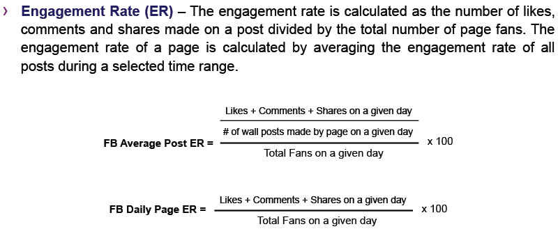 FB Daily Page ER seçilen tarih aralığındaki sayfa post’larınızın toplam like,yorum ve paylaşım sayısının o tarih aralığındaki hayran sayınıza bölünüp 100 ile çarpılmasıyla ortaya çıkan ER,